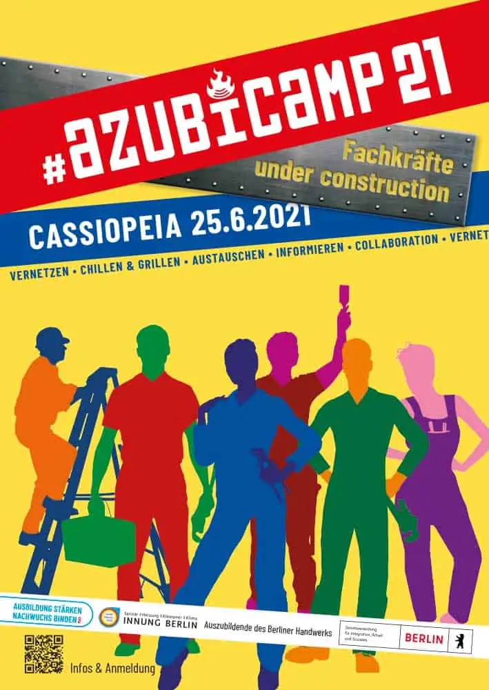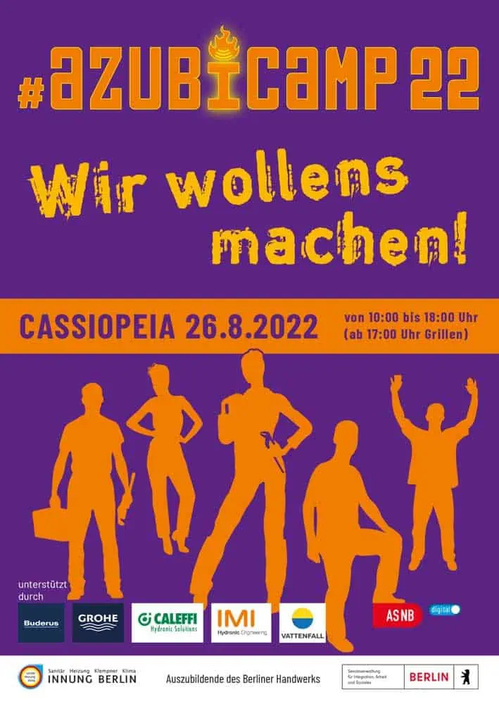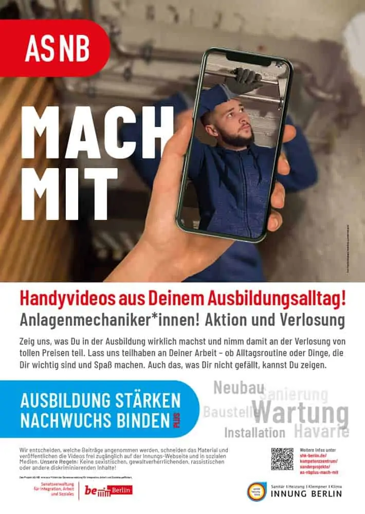 Für das Projekt „Ausbildung stärken – Nachwuchskräfte binden“ (AS-NB) waren Logos, Printprodukte und Designs für diverse Aktionen zu gestalten. Ziel des Projektes ist es, die Gründe für vorzeitige Vertragslösungen und Ausbildungsabbrüche im Handwerk – konkret im Beruf Anlagenmechaniker*in SHK – zu untersuchen, und gegensteuernde Maßnahmen zu entwickeln. Dazu gehören auch die Events für Jugendliche „Azubicamp“ oder das „Klima-Camp“