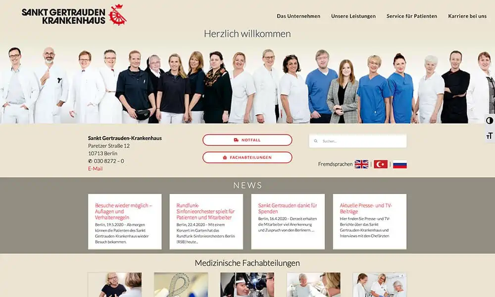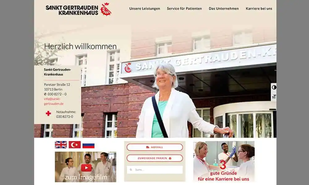 Das Sankt Gertrauden-Krankenhaus wurde 1930 von den Katharinenschwestern in Berlin-Wilmersdorf erbaut. Es ist ein fester und wichtiger Bestandteil der medizinischen Versorgung und Ausbildung in Berlin. Das Erscheinungsbild hat sich im Laufe der Zeit eher ziellos weiterentwickelt.