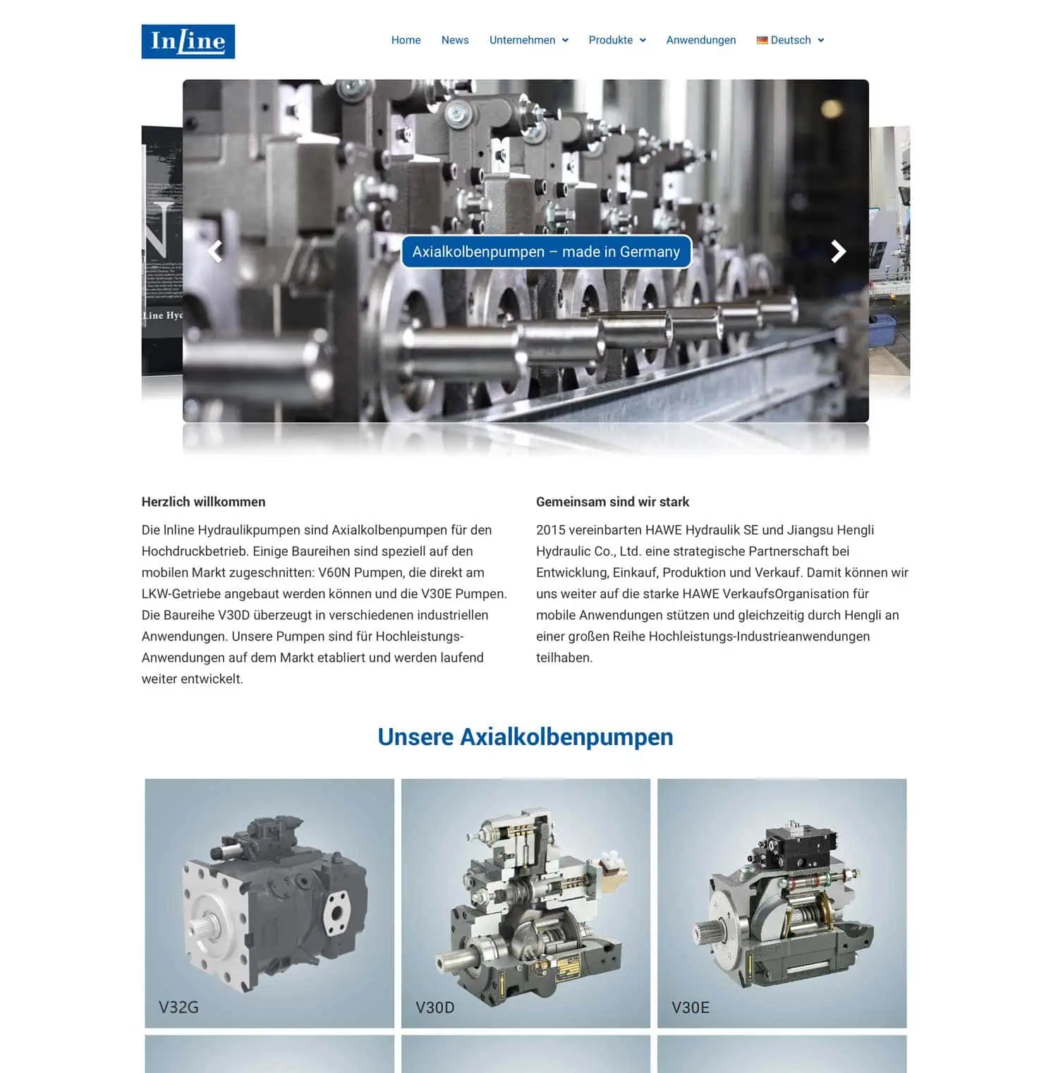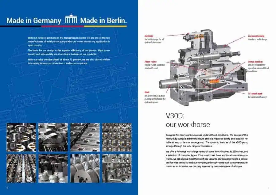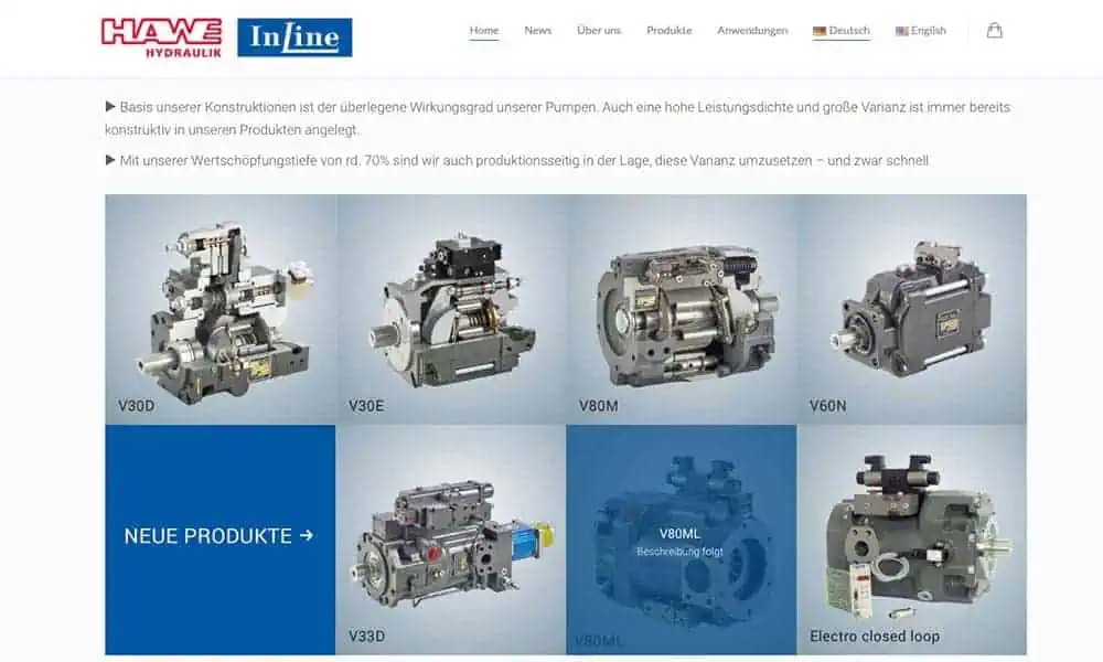 Die lnline Hydraulikpumpen sind Axialkolbenpumpen für den Hochdruckbetrieb. Sie werden z.B. für Nutzfahrzeuge gebraucht. 2015 wurde eine Partnerschaft der traditionellen Berliner Firma mit dem chinesischen Unternehmen Hengli Hydraulik vereinbart. Lücken-Design überarbeitete das Corporate-Design und erstellte verschiedene Broschüren, die Geschäftsausstattung, Flyer, Messedisplays sowie die Website. Im diesem Rahmen wurden auch Fotos in Kooperation mit Christian Thomas erstellt.