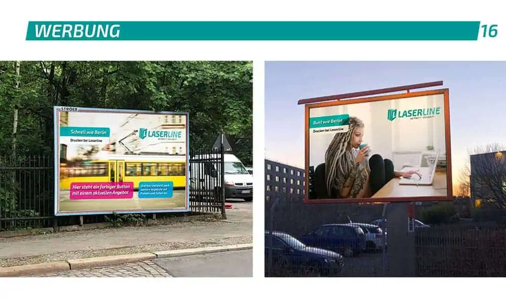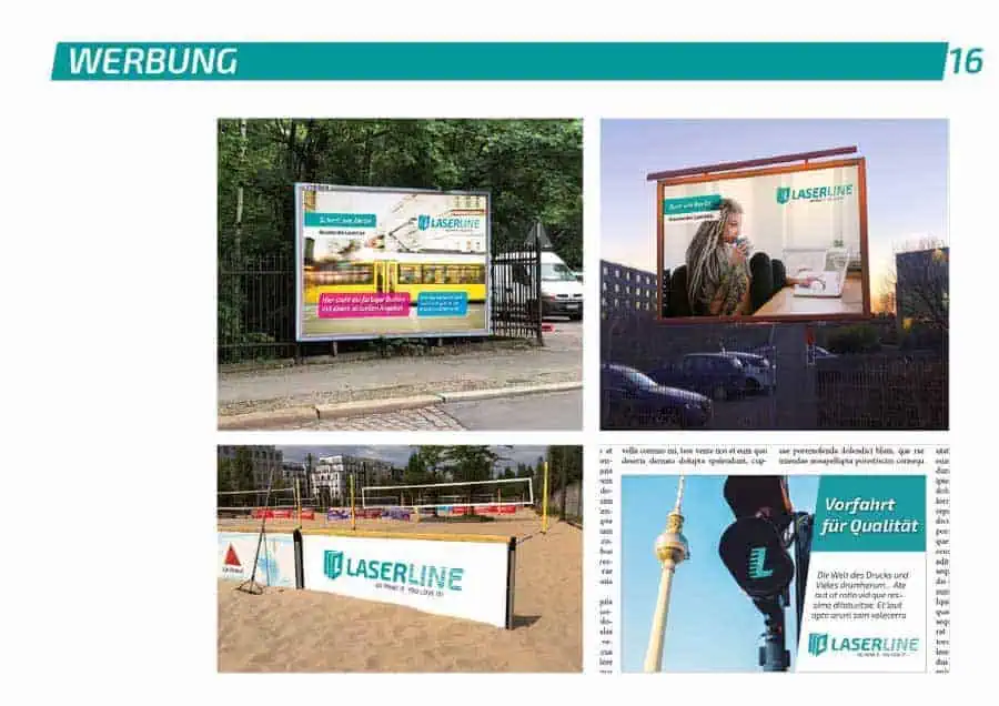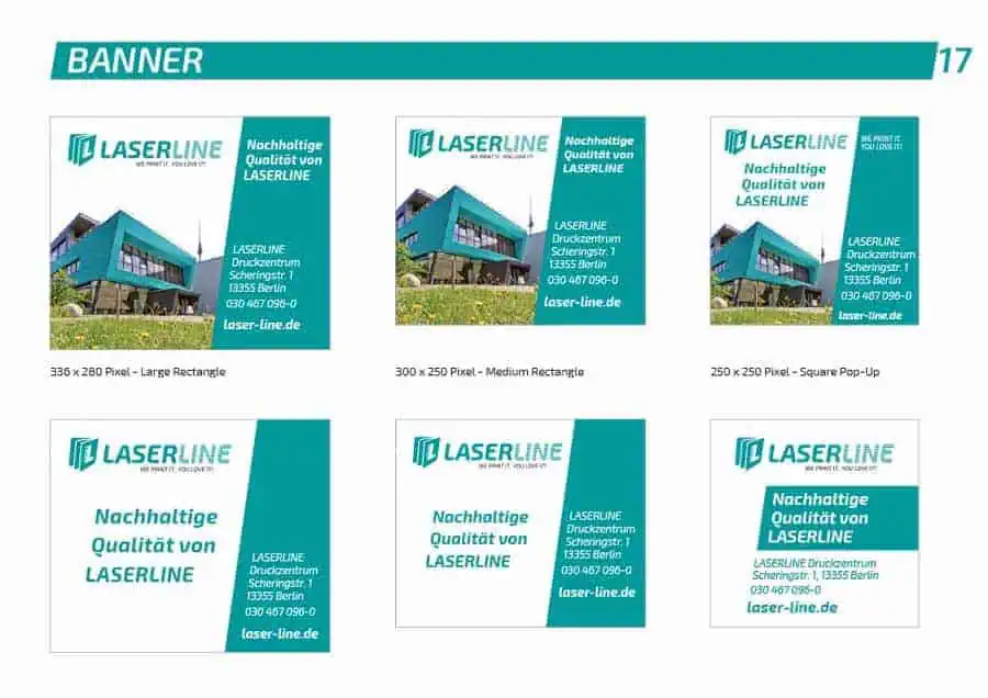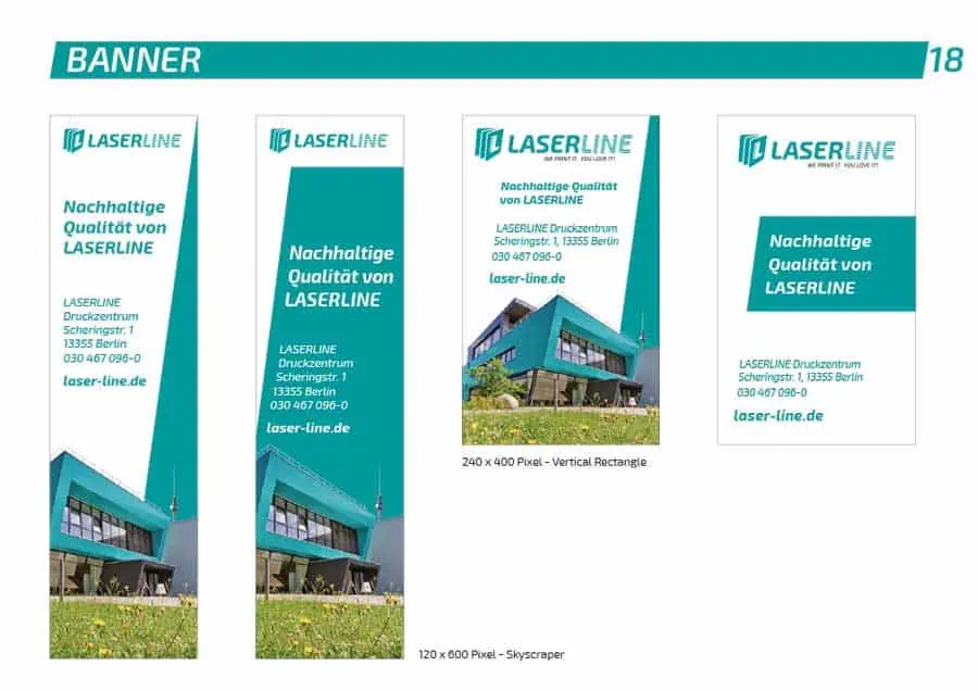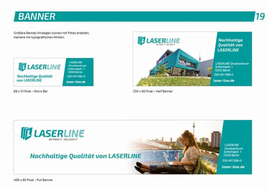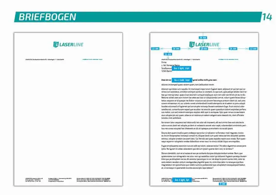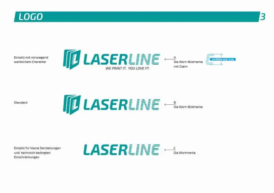 Nach dem Besitzerwechsel wurde es 2019 Zeit für ein Redesign und eine Auffrischung des Corporate-Designs. Laserline ist eine der größten Druckereien Berlins und mit seinem Online-Shop auch deutschlandweit bedeutend geworden. Wichtig war, das über 20 Jahre aufgebaute Vertrauen zu den Kunden zu behalten und den Übergang behutsam zu gestalten. Daher sollten die wichtigsten Elemente, die Farbe und das Linienraster im Logo, erhalten bleiben. Hier sind einige Varianten aus der Entwurfsphase für den Schriftzug und für das Piktogramm zu sehen. Weiter unten sind einige Seiten aus dem Corporate-Design Handbuch.