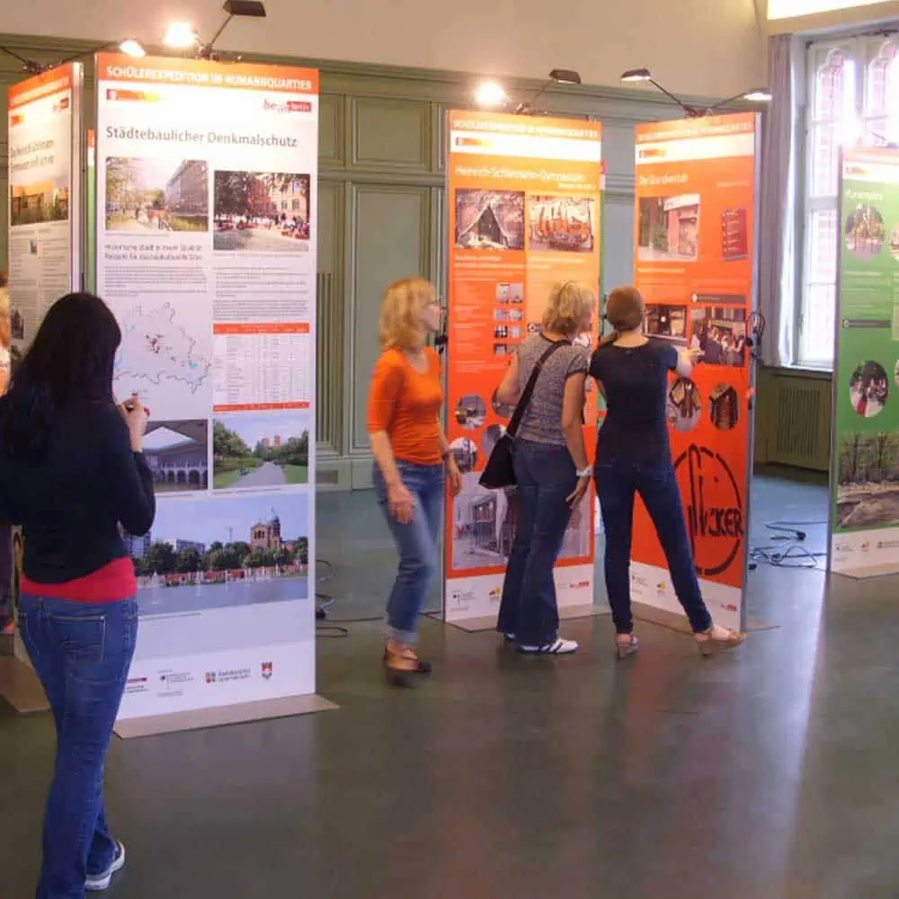 Design für Messen, Ausstellungen und Events. Komplett von der Einladung bis zur Ausstellungstafel, vom Katalog bis zur Konzeption, vom Namensschild bis zur Beschilderung. Wir gestalten individuell und hochwertig und begleiten die professionelle Ausfertigung.