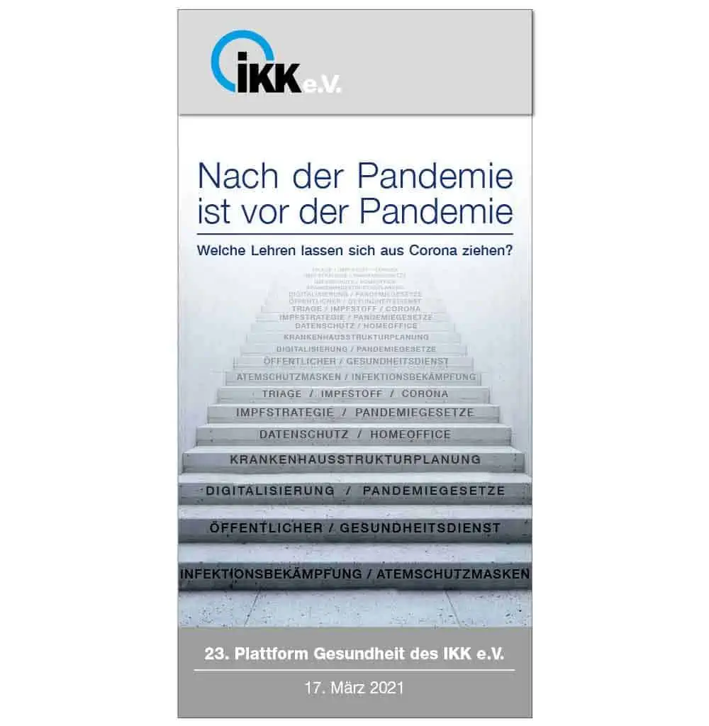 Der IKK e.V. setzt sich für eine solidarische und nachhaltig finanzierte gesetzliche Krankenversicherung ein. Um gesundheitspolitische Ziele und Probleme zu diskutieren ist die „Plattform Gesundheit“ ins Leben gerufen worden. Die Veranstaltungen finden z.Z. Online statt.