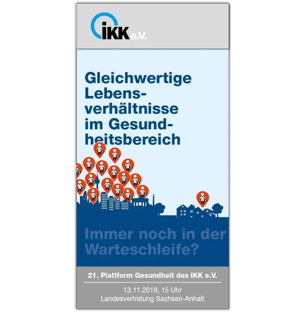Zu diesem gesundheitspolitischen Thema lädt die Plattform für Gesundheit der IKK e.V. ein. Es ist bereits die 18. Veranstaltung, die auch dieses mal wieder von Lücken-Design bebildert wird. Hier sind weitere Titelentwürfe zu sehen.