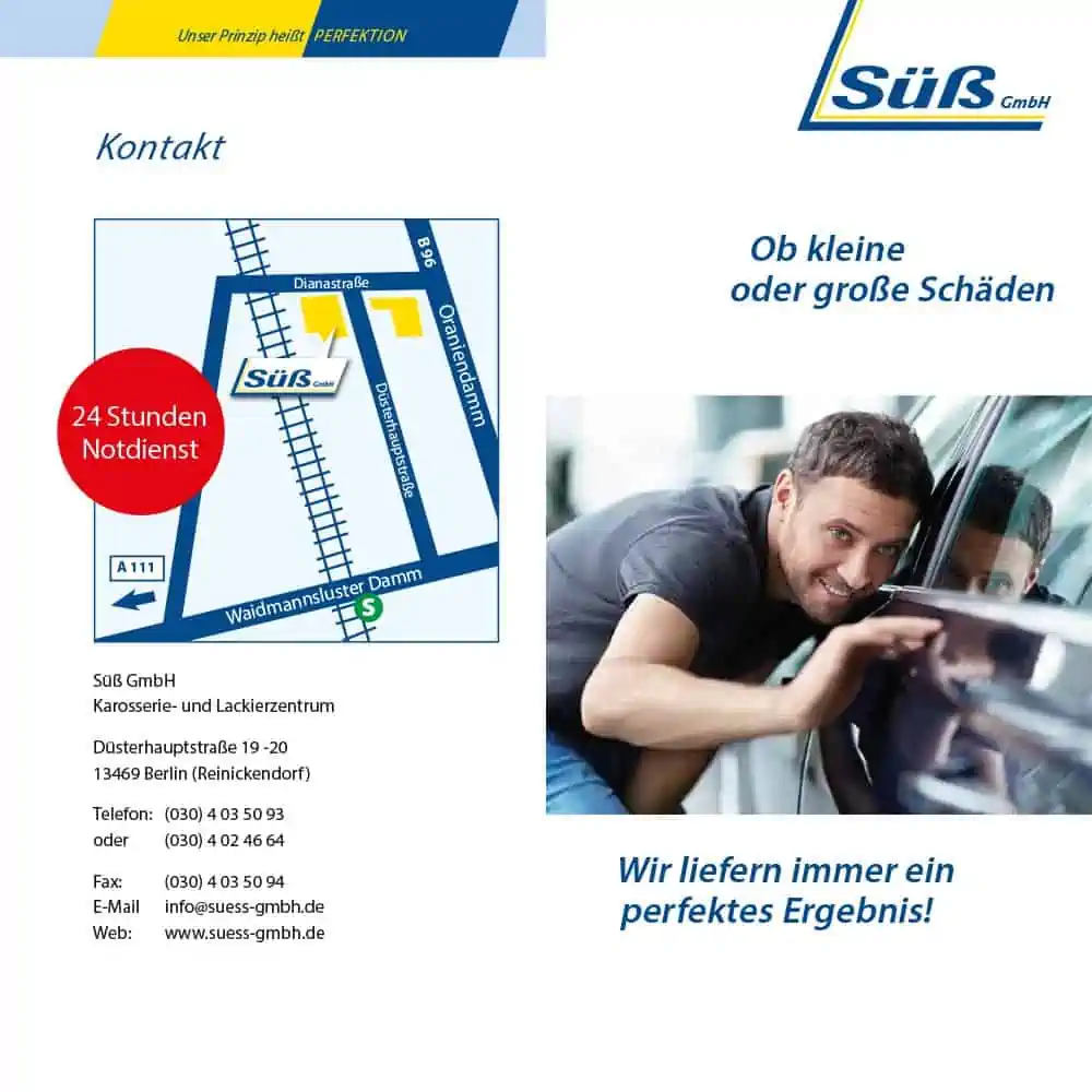 Für die nicht ganz so schnell und einfach durchzuführenden Reparaturen ist die Firma Süß da. „Höchste Qualität, beste Leistung, umfassender Service“ – mit diesen Ansprüchen kann sich auch Lücken-Design identifizieren. Wir haben ein Fotoshooting und einige Werbemaßnahmen kreiert.