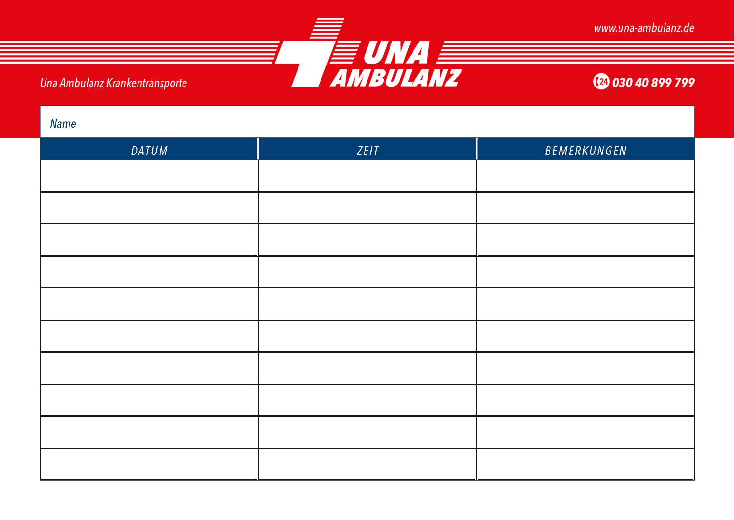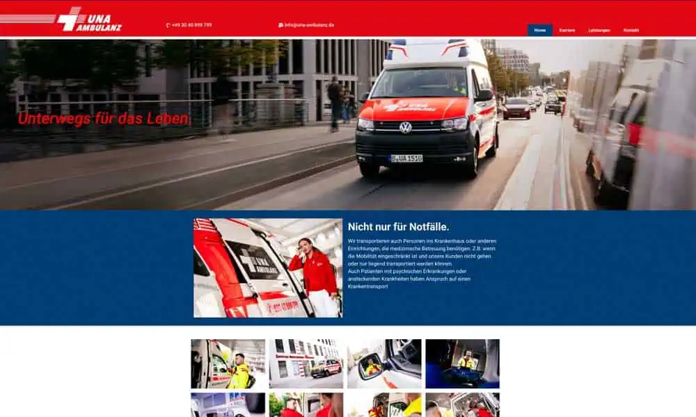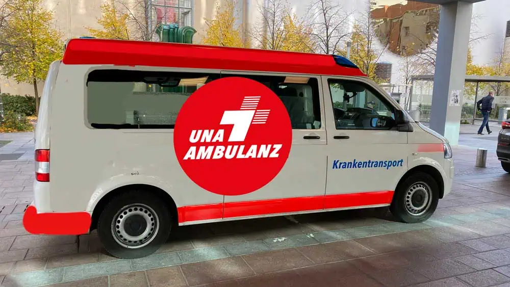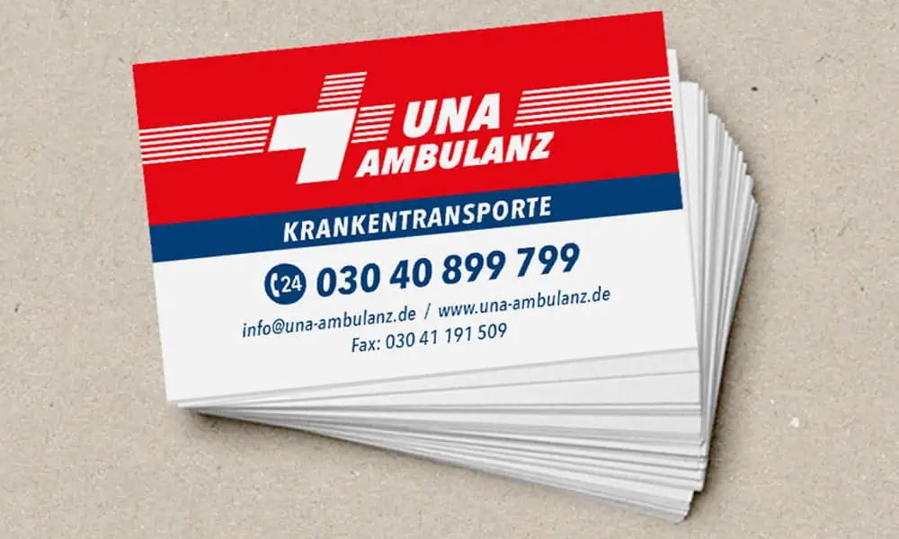 Das Unternehmen Una Ambulanz bietet Krankentransporte in Berlin an. Lücken-Design entwickelte das Logo und das Corporate-Design für das junge Unternehmen.